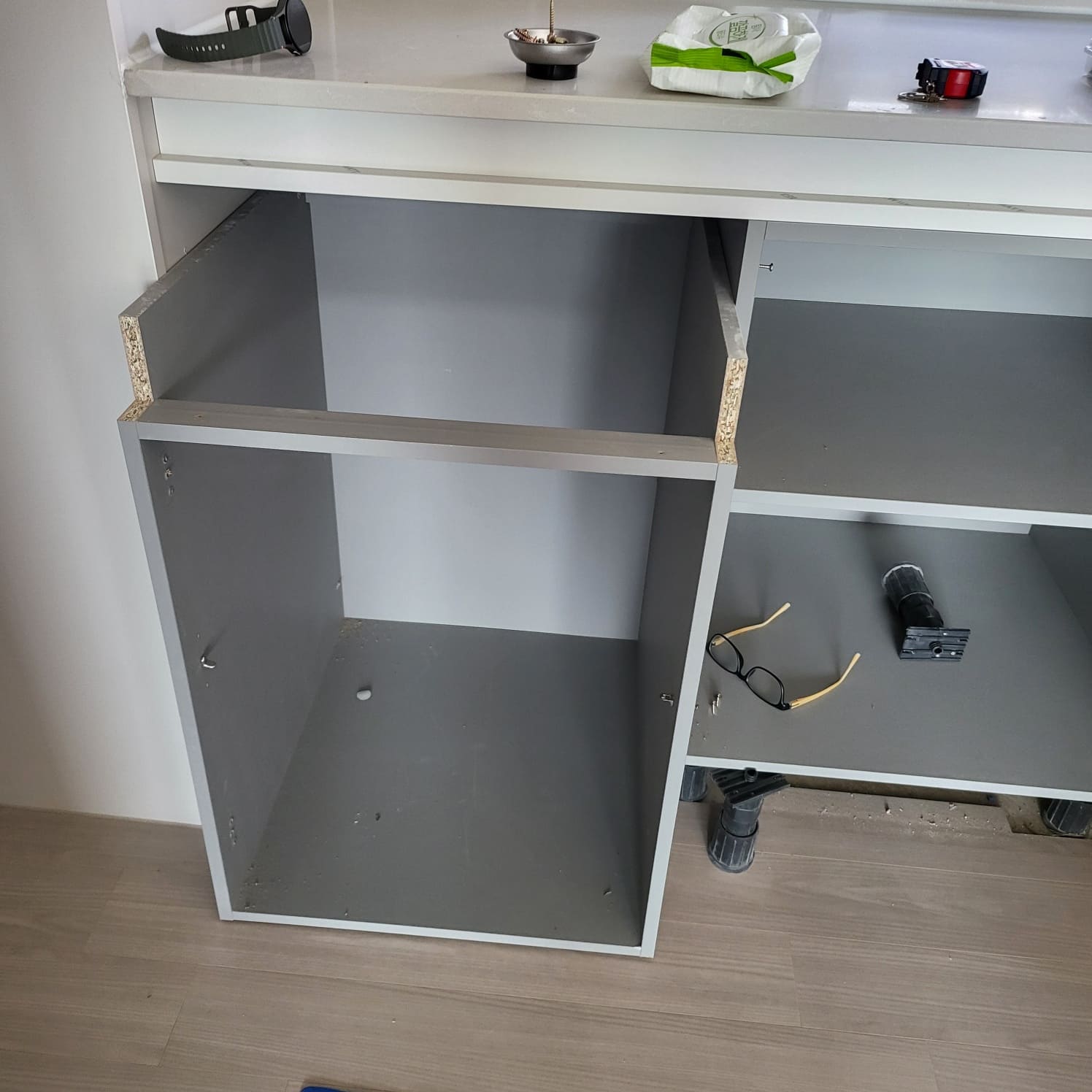 거린다고 하셔서 주방 하부장쪽 리폼을 요청 하신 고객님